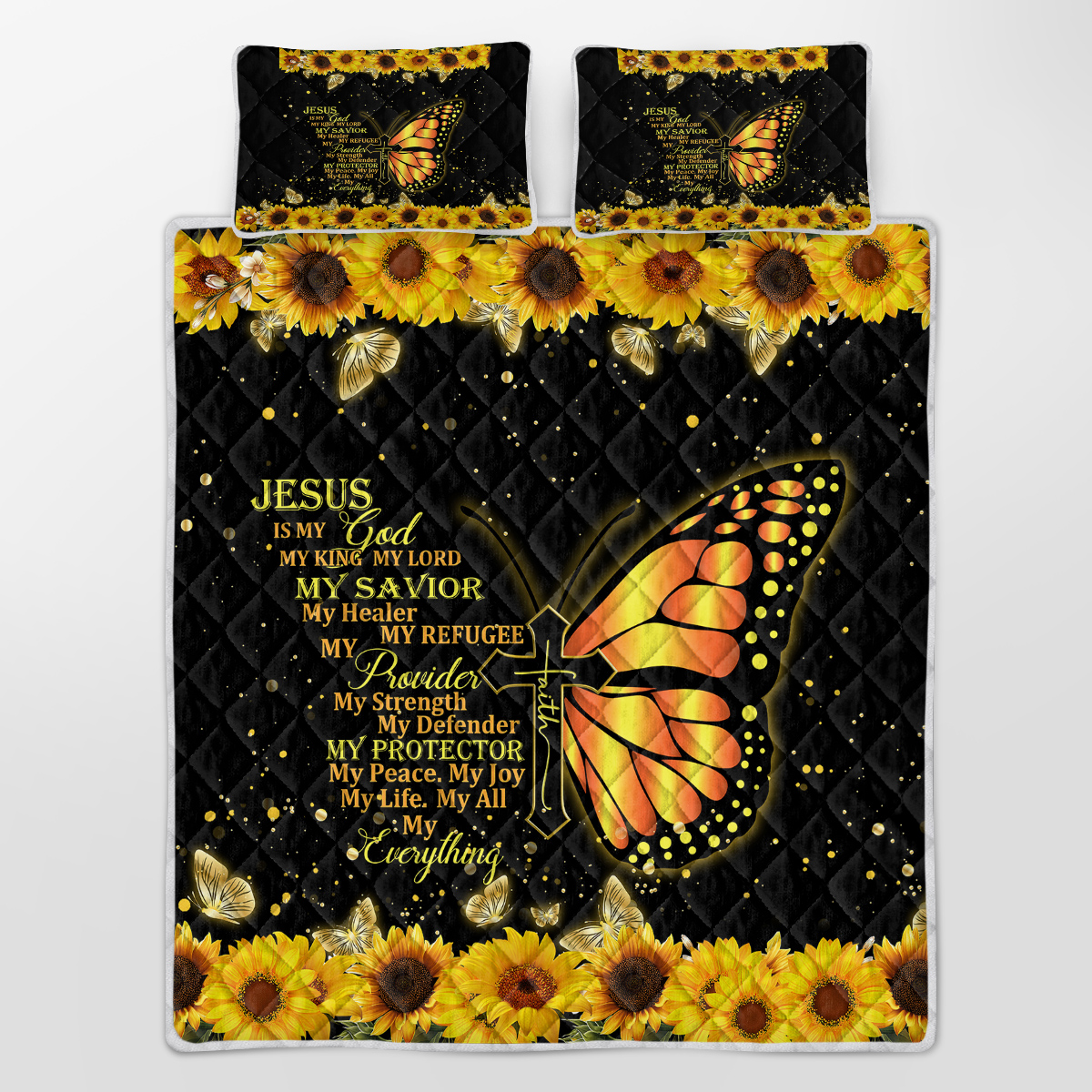 Home > 3pcs Sunflower Butterfly Cross Black Gold Color Soft Thick Warm Bedding Bedding For All Seasons 1 Quilt 2 Pillowcases