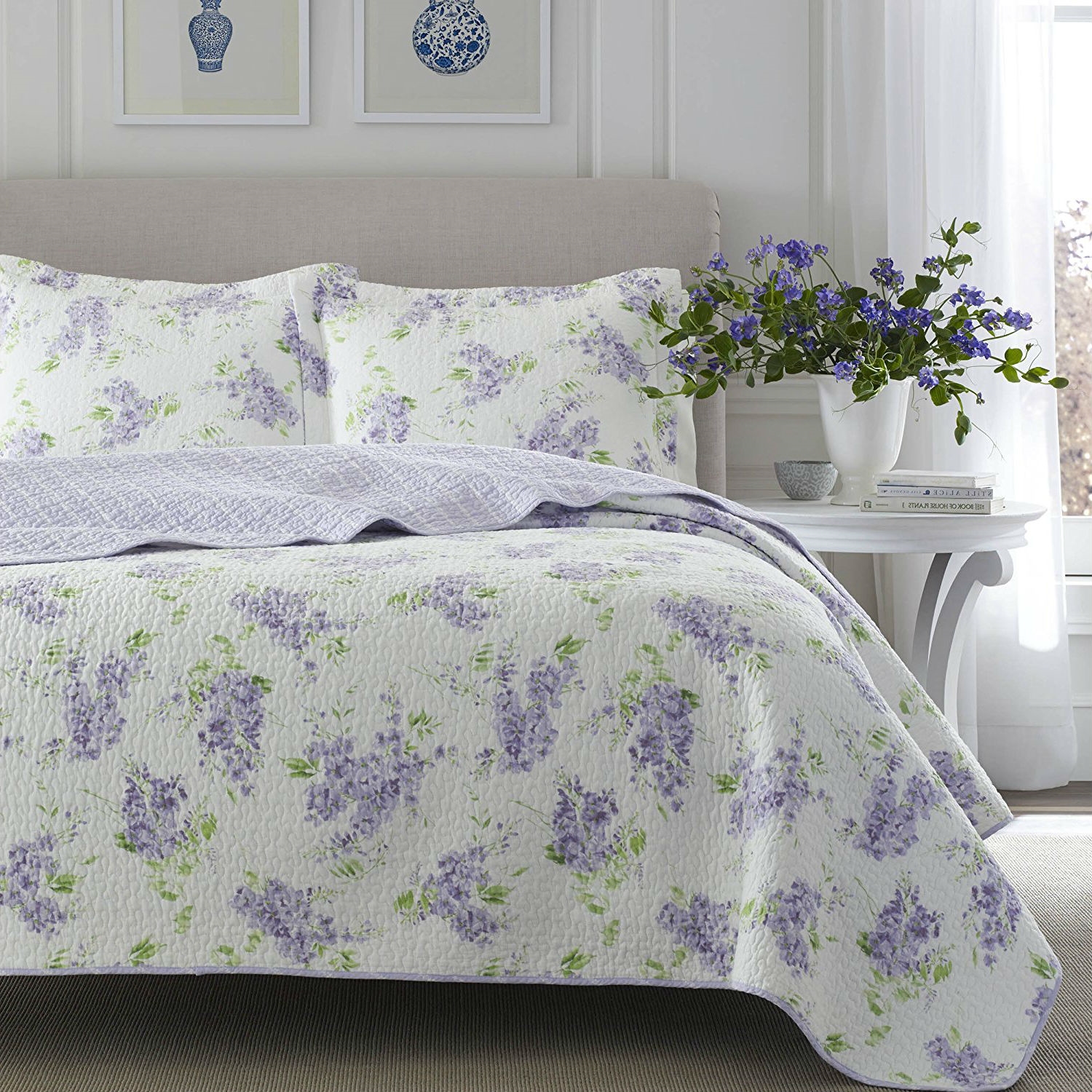 Full / Queen size 3-Piece Cotton Quilt Set with White Purple Floral Pattern Full / Queen size 3-Piece Cotton Quilt Set with White Purple Floral Pattern Full / Queen size 3-Piece Cotton Quilt Set with White Purple Floral Pattern