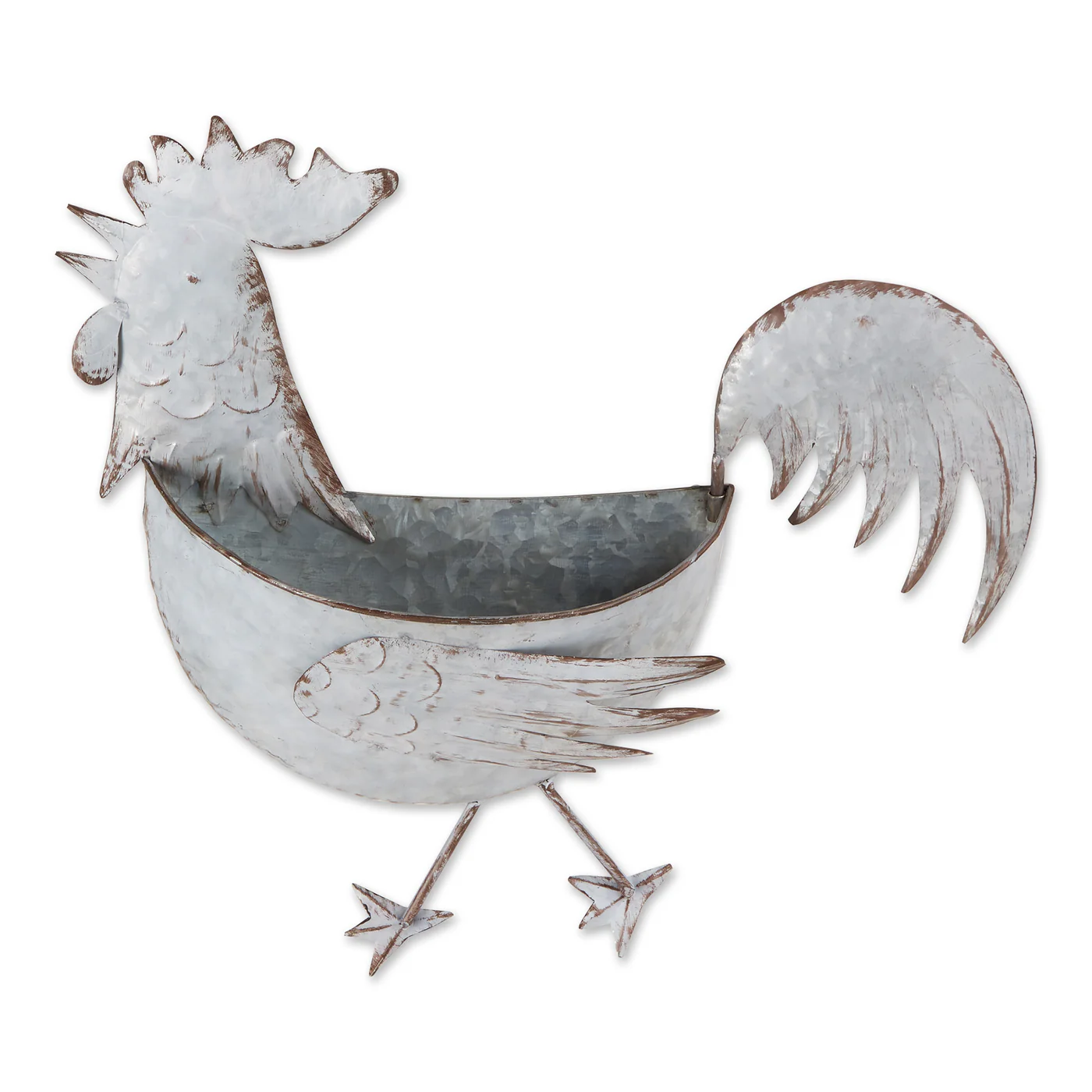 • This adorable galvanized rooster wall planter is made of iron and galvanized metal; This charming piece will add charm to any garden or indoor space