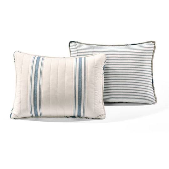 Home > Full/Queen Blue Off-White Stripe 3 Piece Reversible Cotton Quilt Set