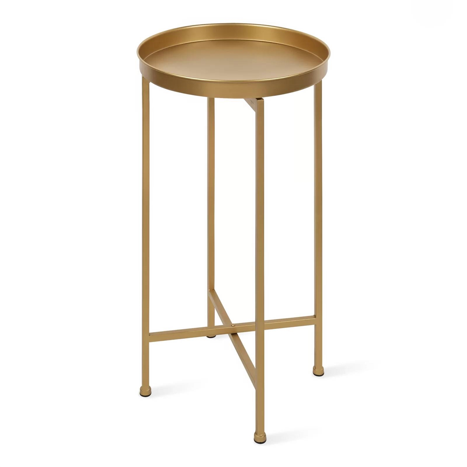 Classic Gold Finish Metal Round End Table Nightstand with Removable Tray Top