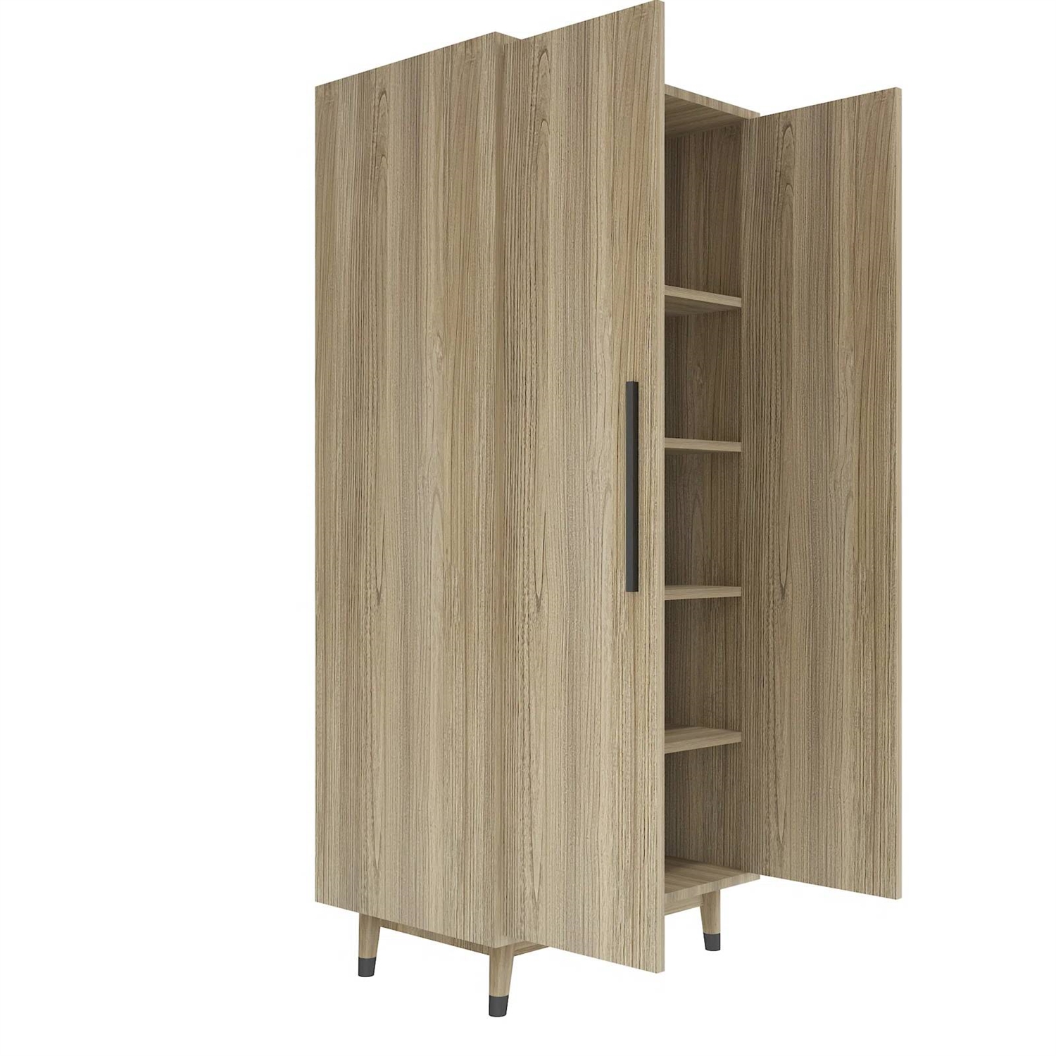 Home > Mid-Century Modern 2-Door Bedroom Armoire Wardrobe Cabinet in Oak Wood Finish