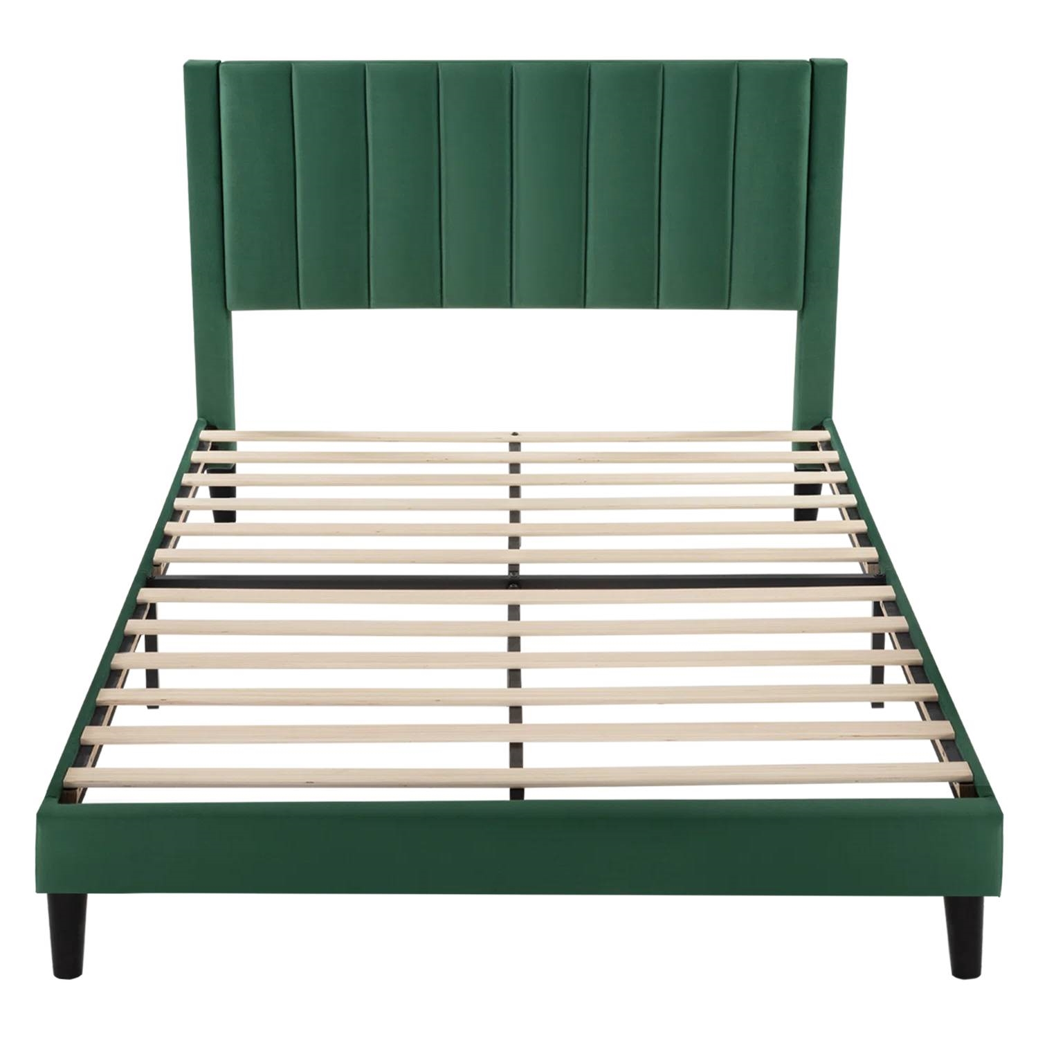 Queen size Modern Green Velvet Upholstered Platform Bed with Headboard