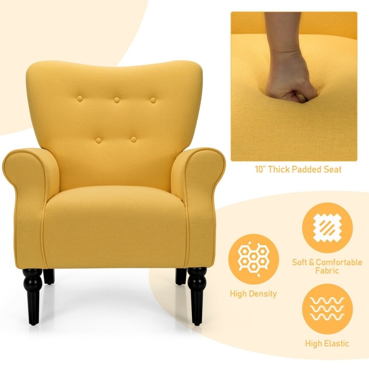 Home > Yellow Retro Tufted Polyester Accent Chair with Stylish Espresso Wood Legs
