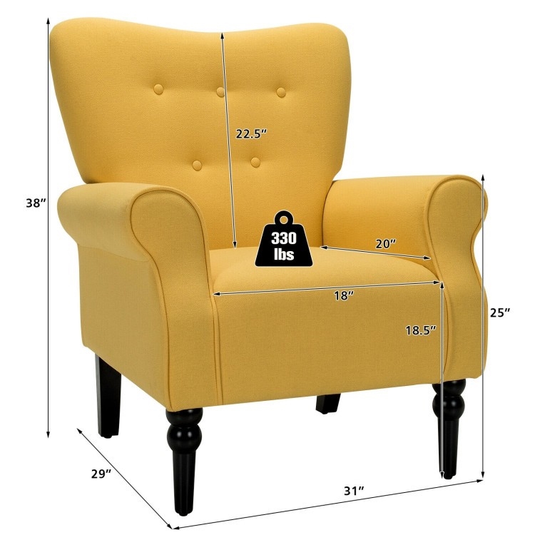Yellow Retro Tufted Polyester Accent Chair with Stylish Espresso Wood Legs