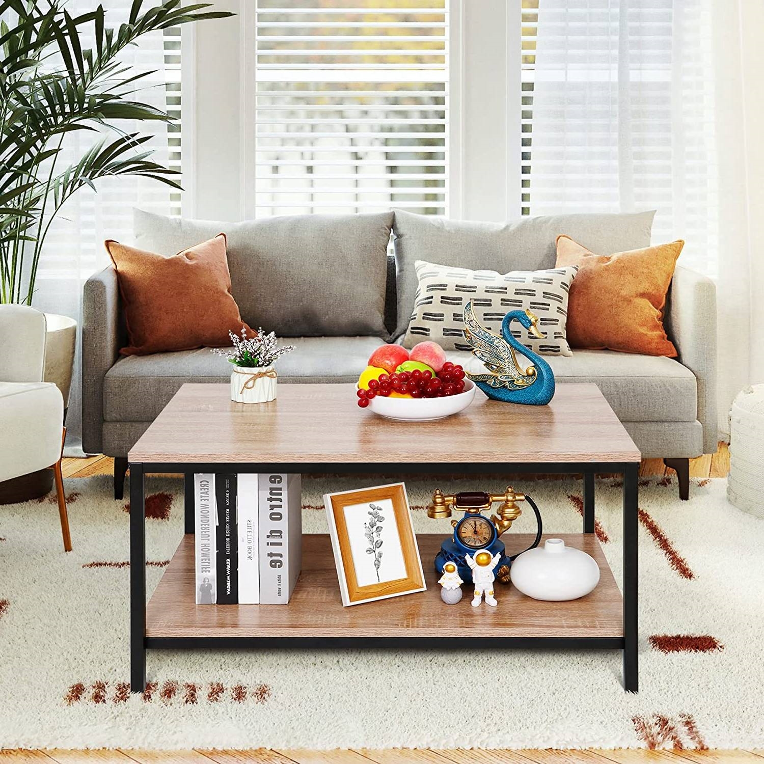 Modern 2-Tier Metal Wooden Coffee Table in Natural Wood Finish Modern 2-Tier Metal Wooden Coffee Table in Natural Wood Finish Modern 2-Tier Metal Wooden Coffee Table in Natural Wood Finish Modern 2-Tier Metal Wooden Coffee Table in Natural Wood Finish