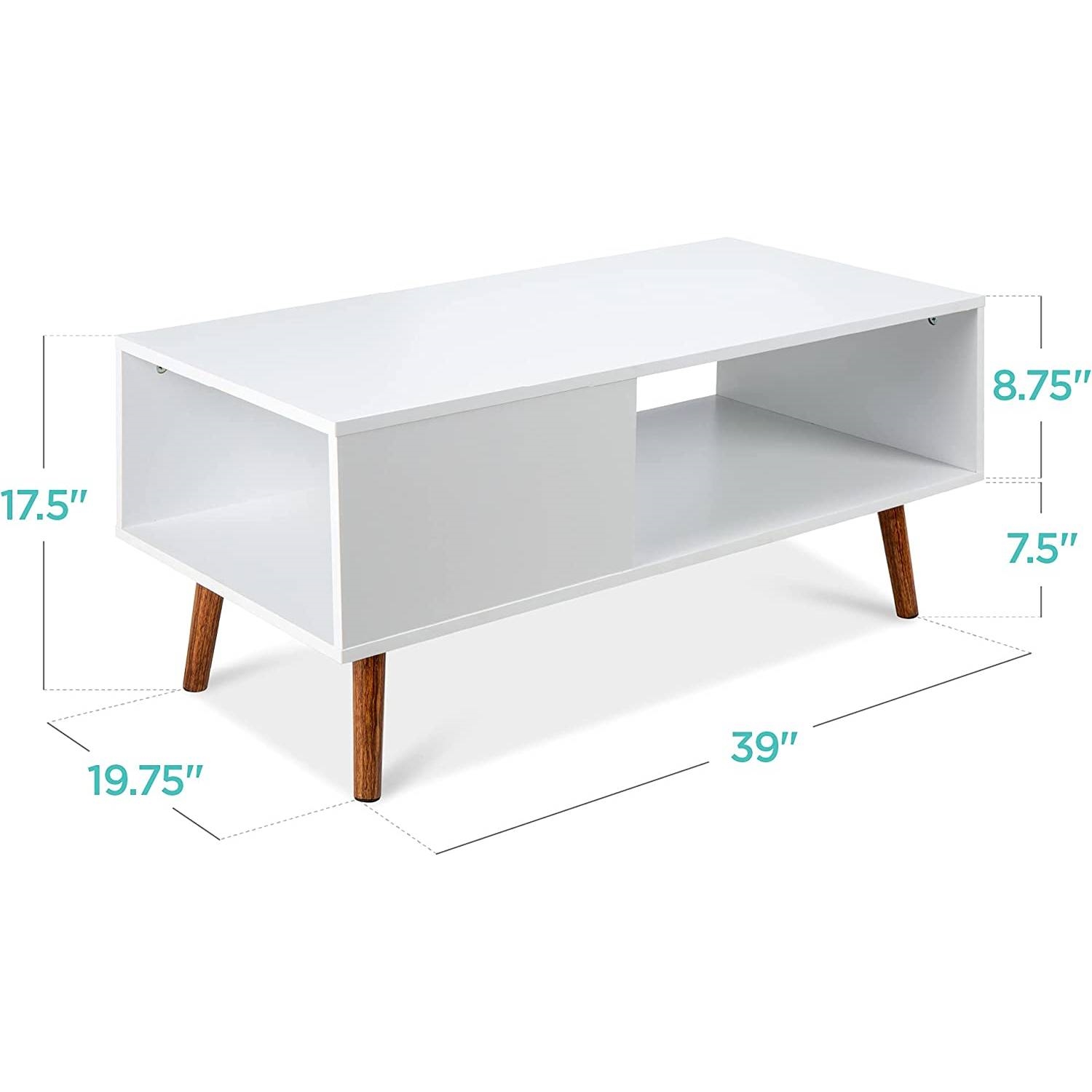 Modern Mid-Century Style Coffee Table Living Room Storage in White Brown Wood