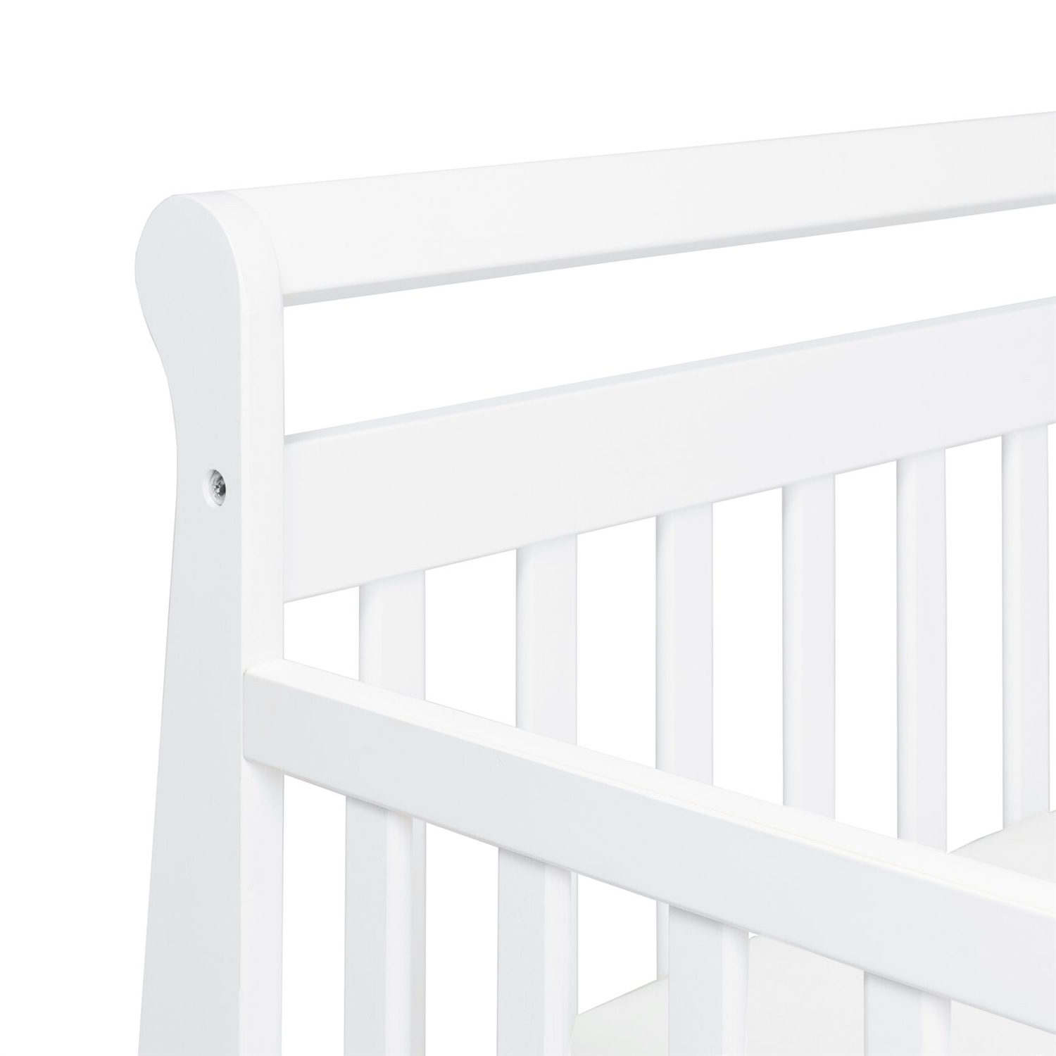 White Wooden Modern Toddler Sleigh Bed with Slatted Guard Rails