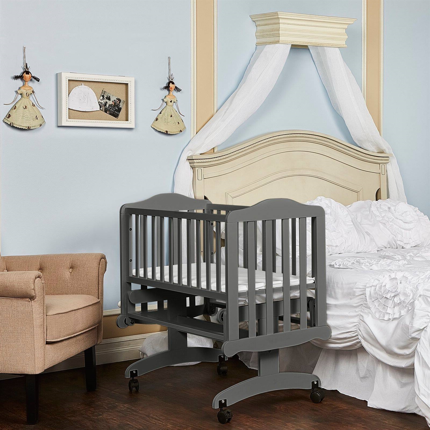 Grey Rock A Bye Baby Glider Cradle with Locking Casters and Crib Mattress