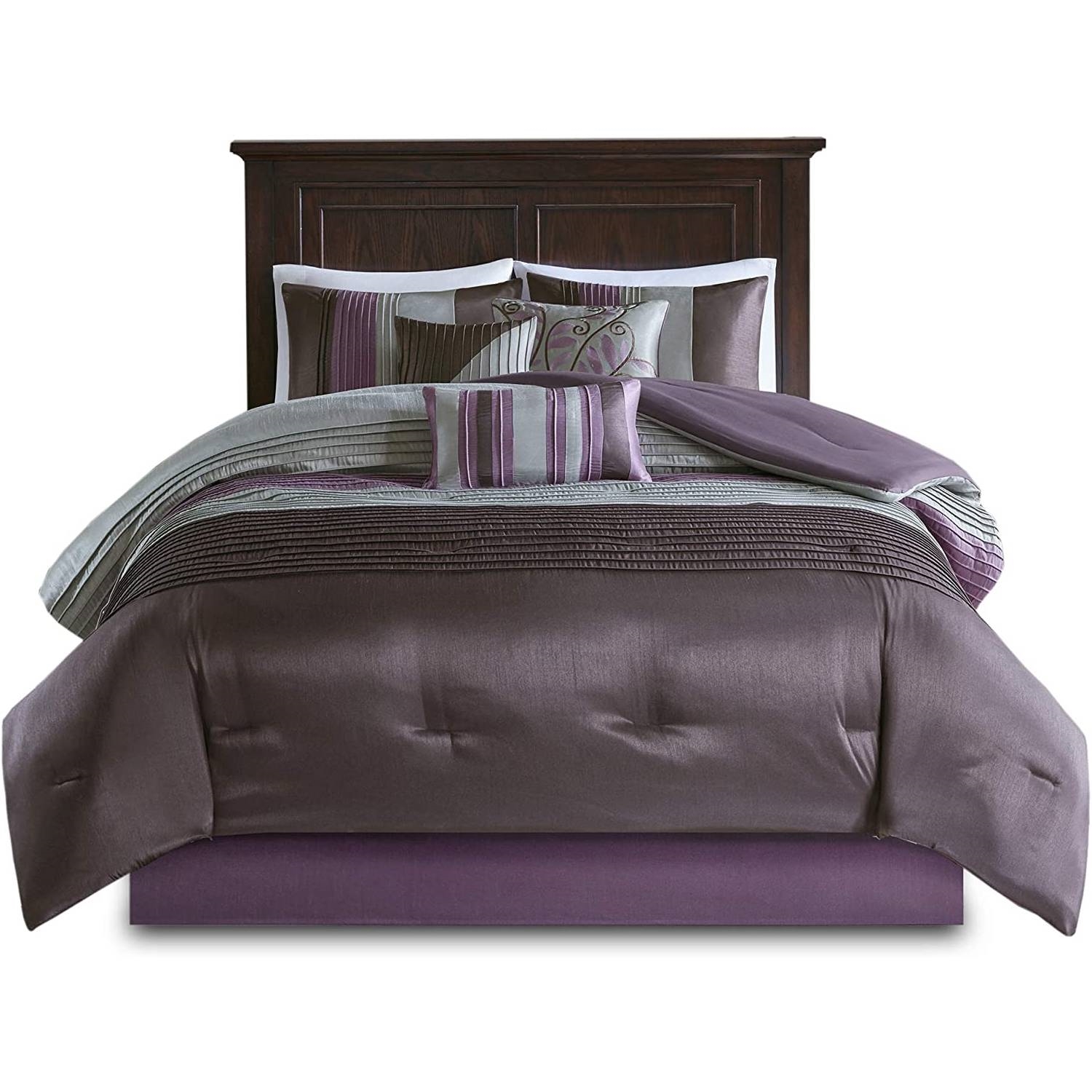 King Size 7 Piece Bed In A Bag Comforter Set Faux Silk Purple Gray Stripes King Size 7 Piece Bed In A Bag Comforter Set Faux Silk Purple Gray Stripes King Size 7 Piece Bed In A Bag Comforter Set Faux Silk Purple Gray Stripes King Size 7 Piece Bed In A Bag Comforter Set Faux Silk Purple Gray Stripes King Size 7 Piece Bed In A Bag Comforter Set Faux Silk Purple Gray Stripes