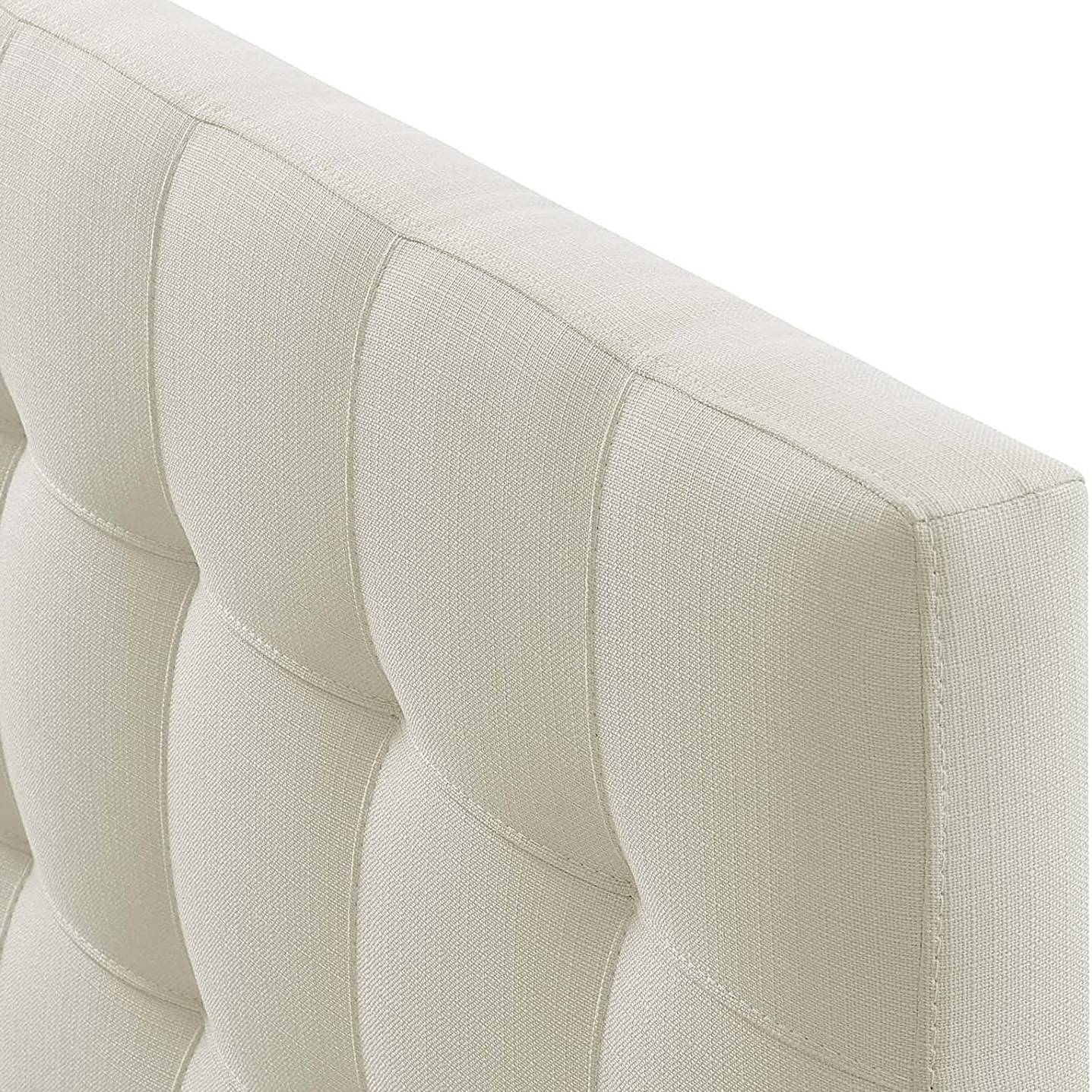 Home > Full size Ivory Linen Fabric Upholstered Tufted Headboard