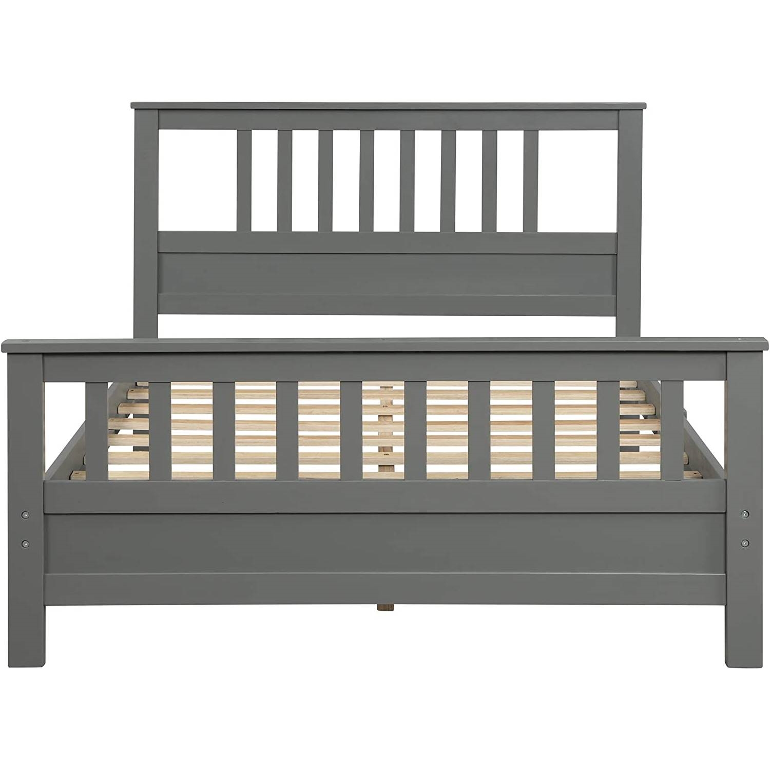 Grey Pine Wood Slatted Platform Headboard Footboard Full Size Bed