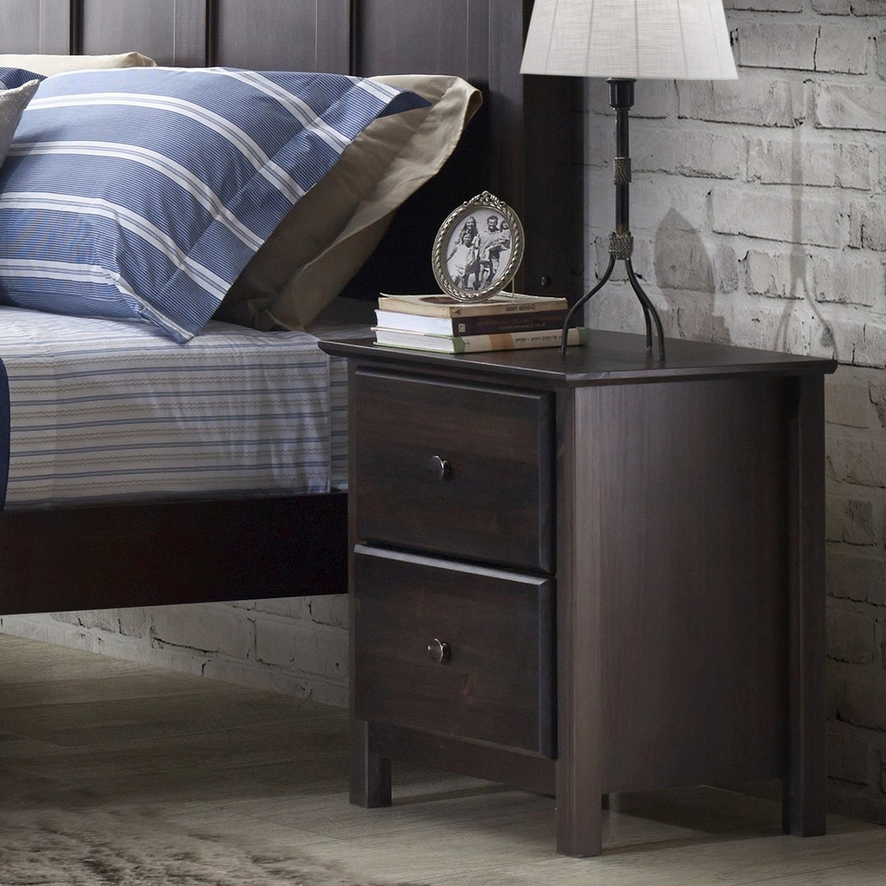 Home > Farmhouse Solid Pine Wood 2 Drawer Nightstand in Espresso