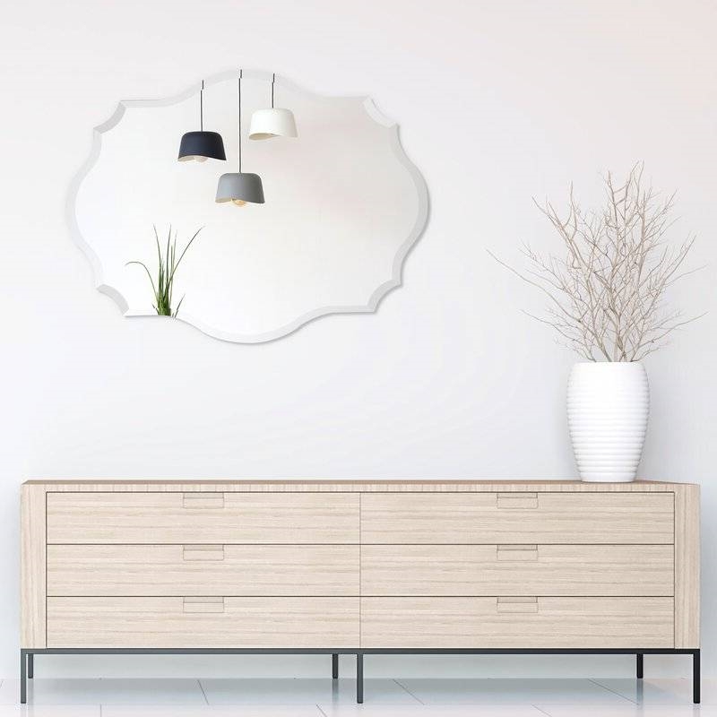 Home > Modern Frameless 32 x 24 inch Scalloped Beveled Accent Bathroom Mirror