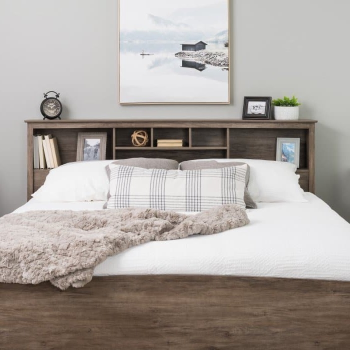 King size Bookcase Headboard in Drifted Gray Wood Finish King size Bookcase Headboard in Drifted Gray Wood Finish King size Bookcase Headboard in Drifted Gray Wood Finish King size Bookcase Headboard in Drifted Gray Wood Finish