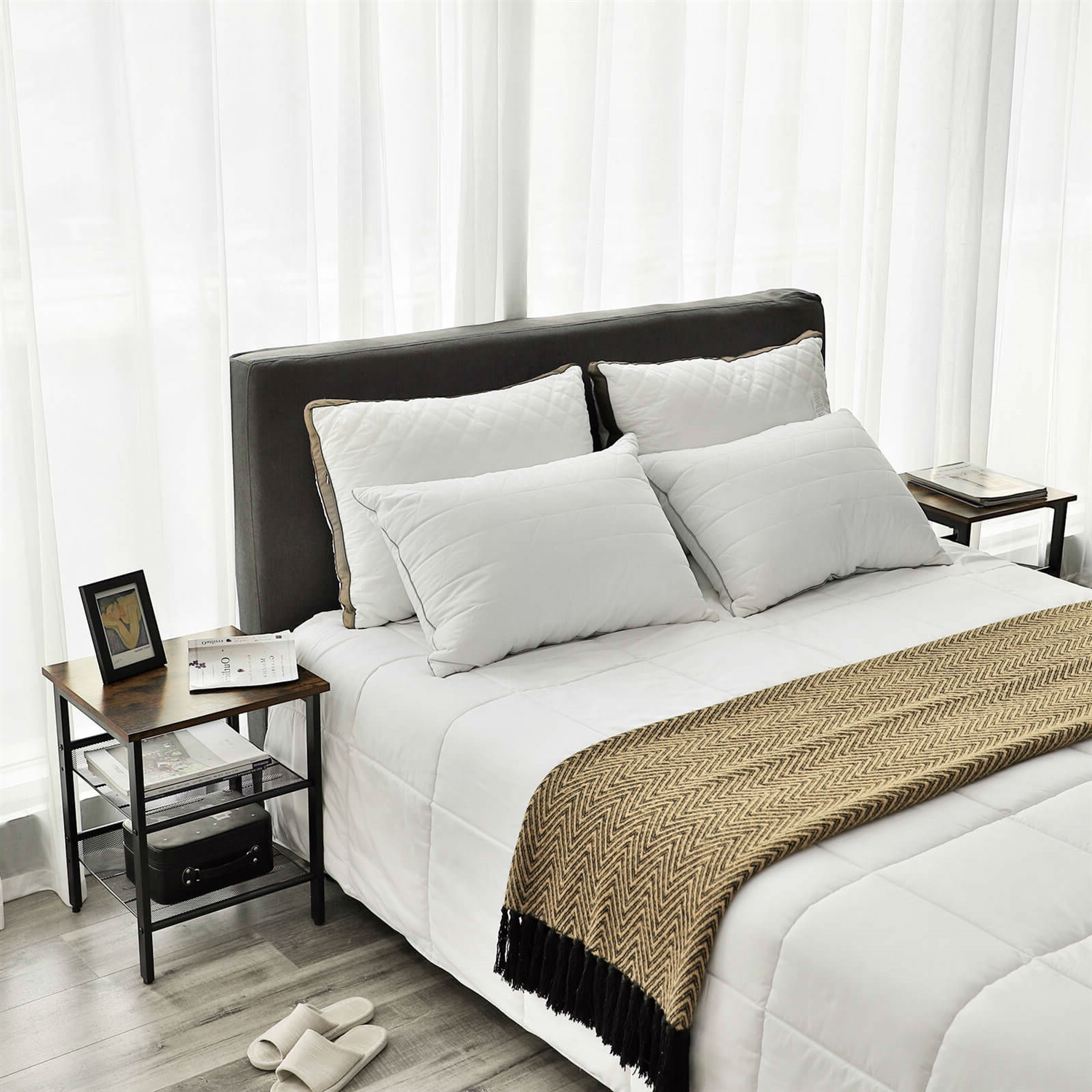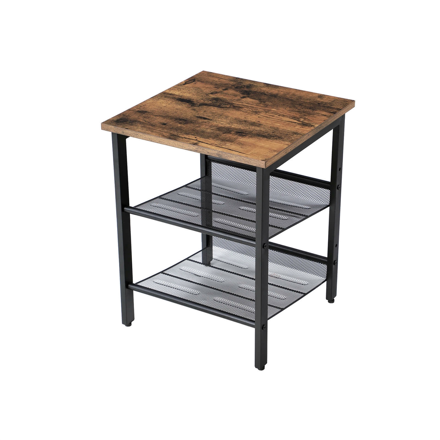 Set of 2 Side Table Nightstand with Medium Wood Finish Top and Mesh Shelves