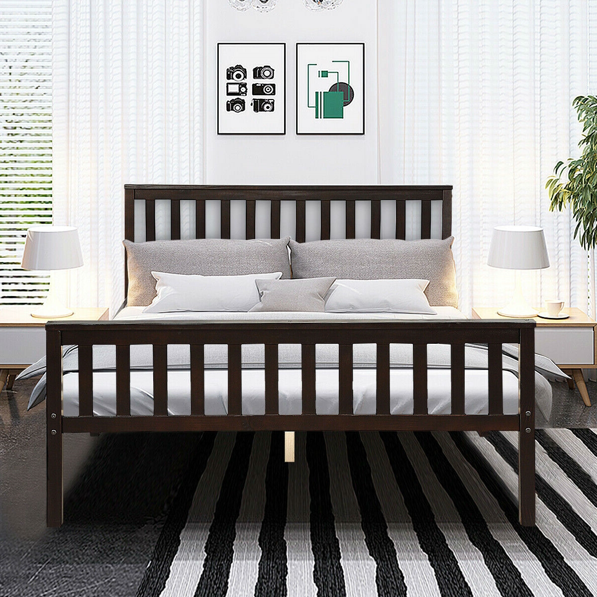 Queen Wood Platform Bed Frame with Headboard and Footboard in Espresso